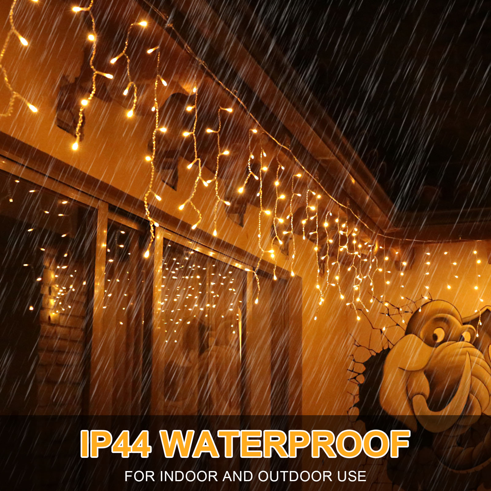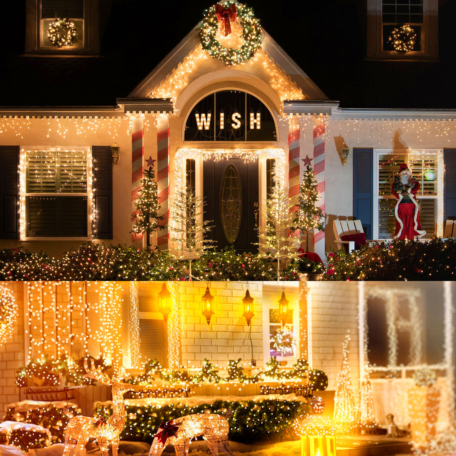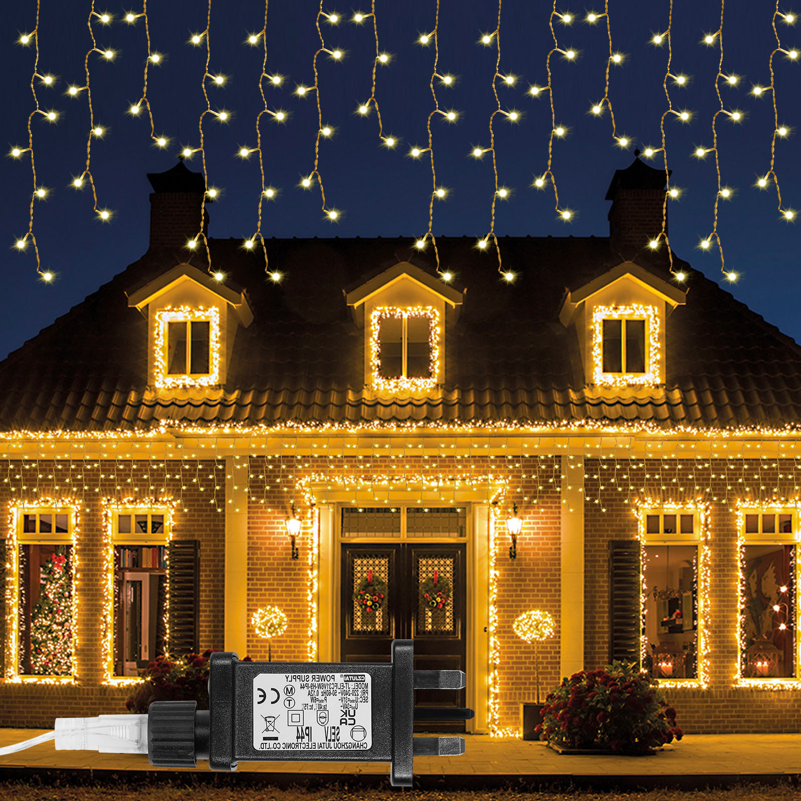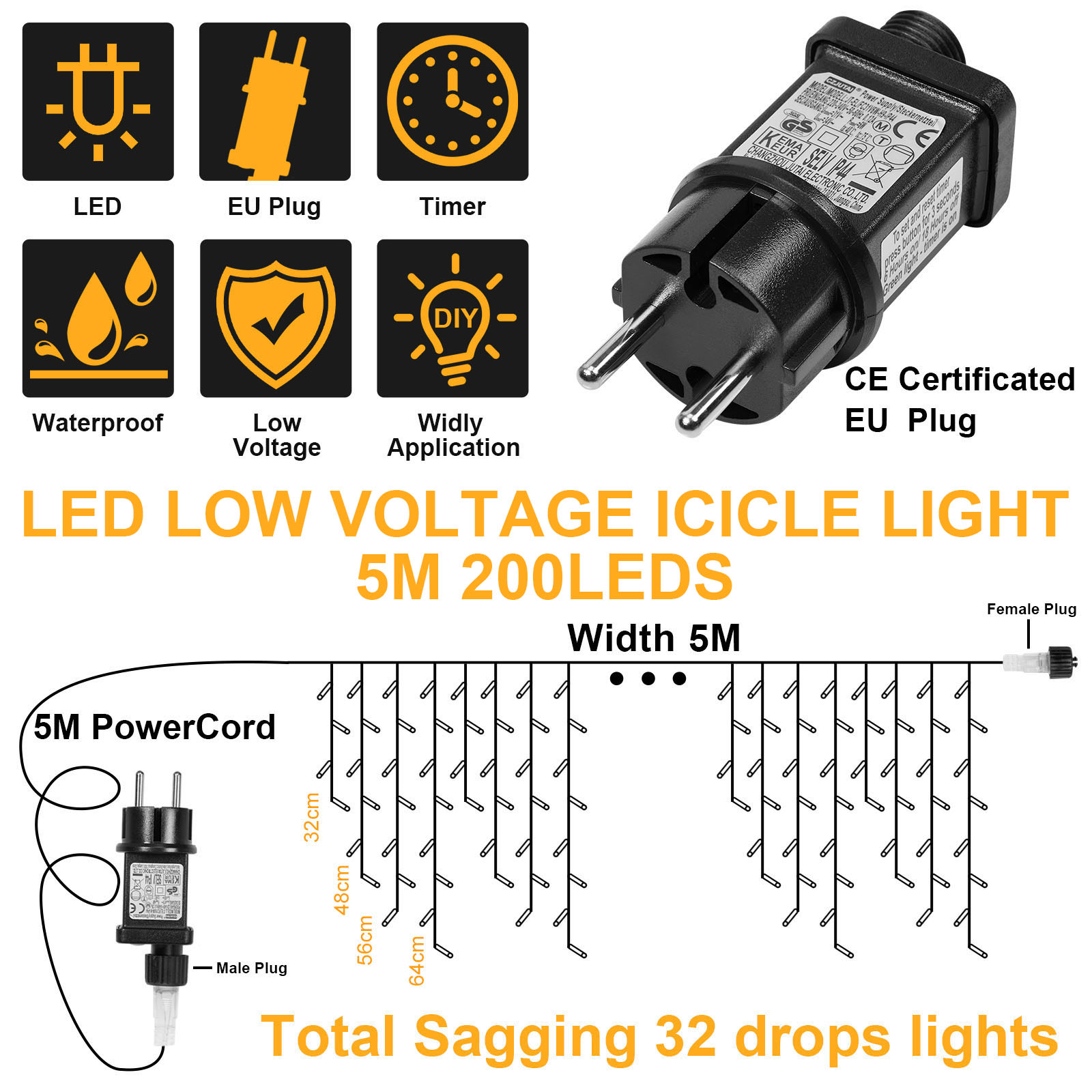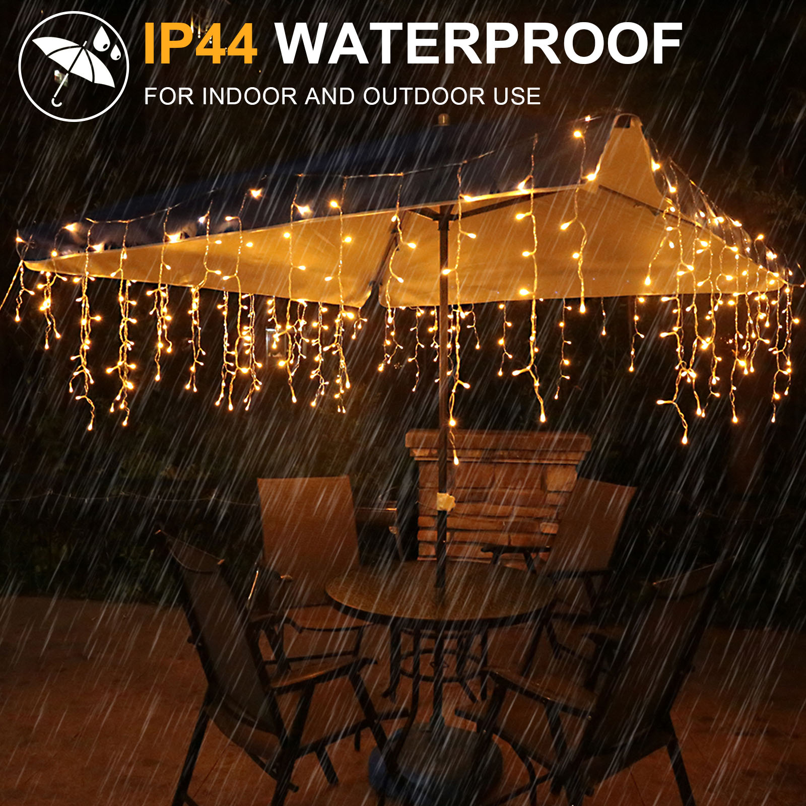 Guirnalda de luces LED para carámbano de 5M/10M/15M con cable de plomo de 5M/16,4 pies Función de memoria de bajo voltaje Temporizador de 8 modos Luces navideñas para carámbano impermeables Luces de carámbano para interiores y exteriores para decoraciones navideñas y bodas