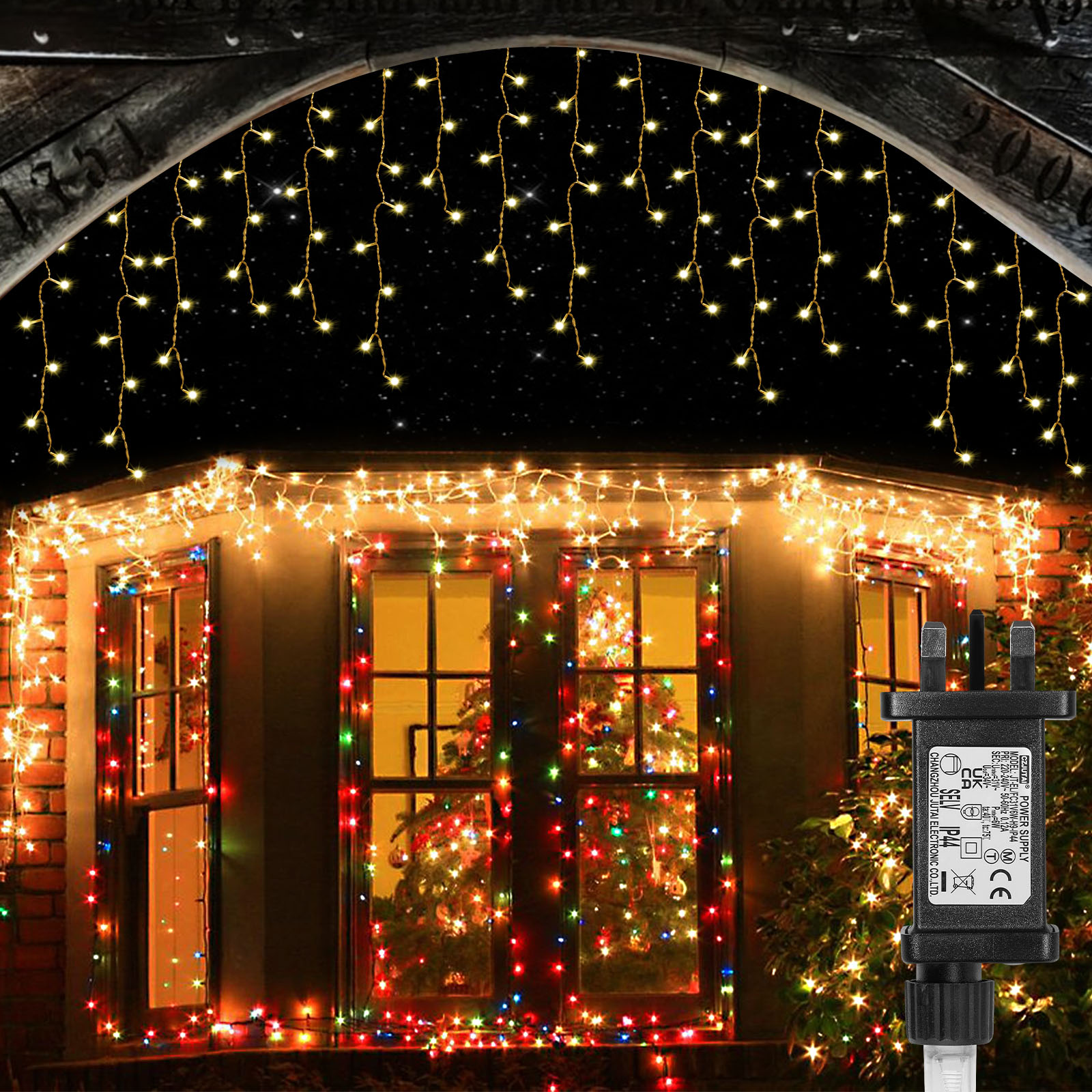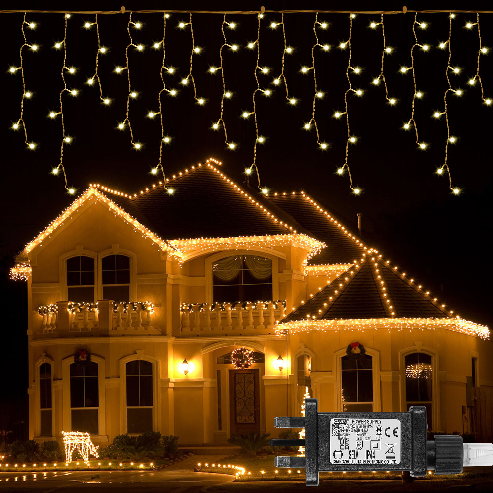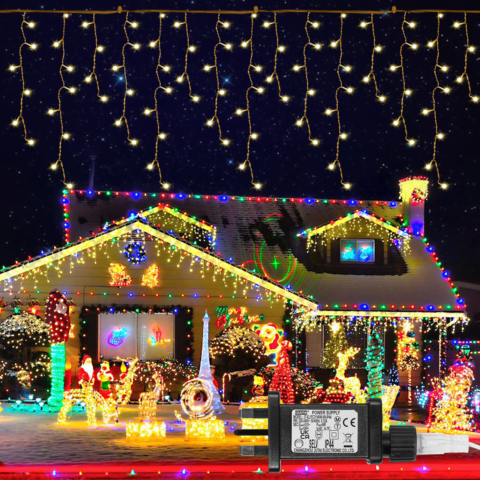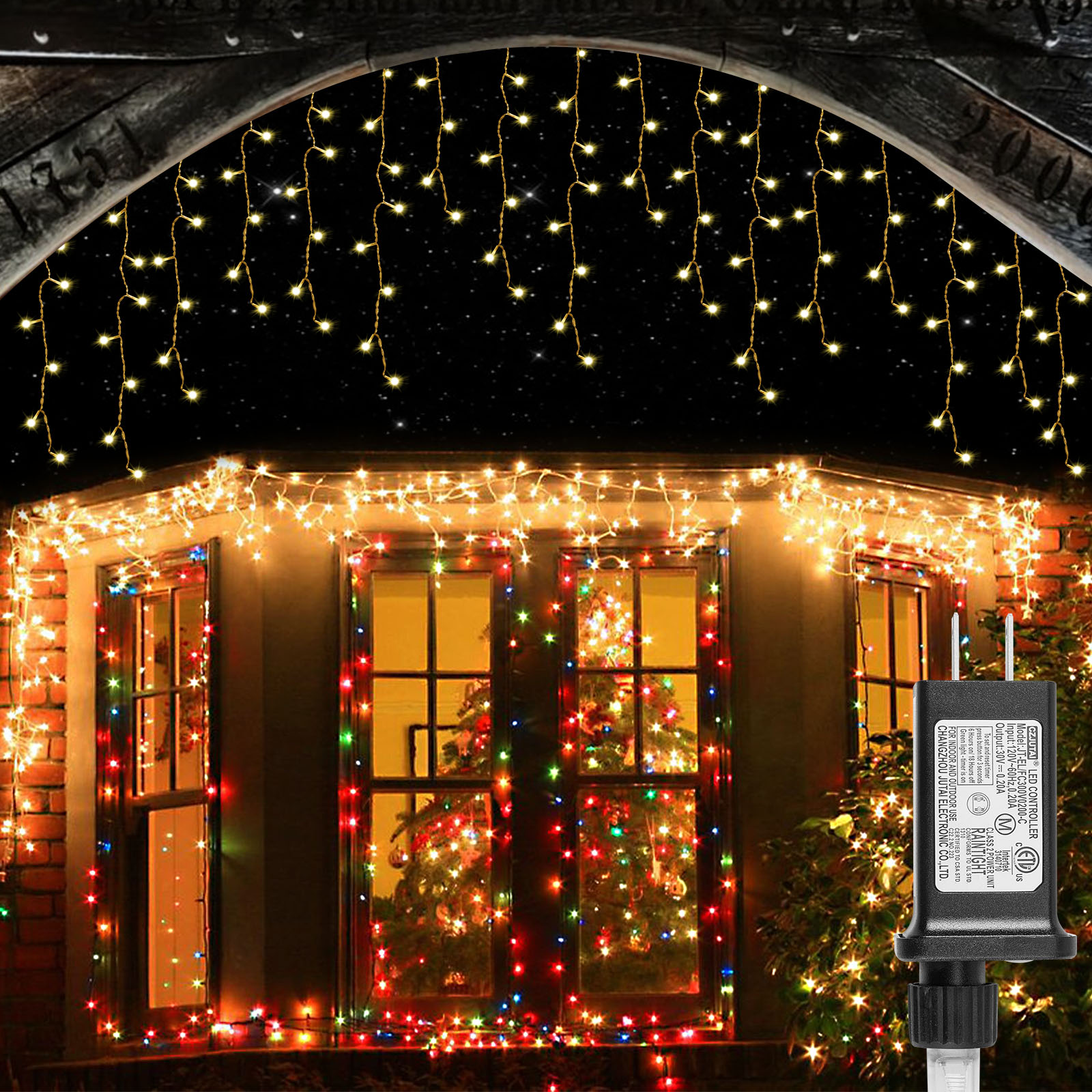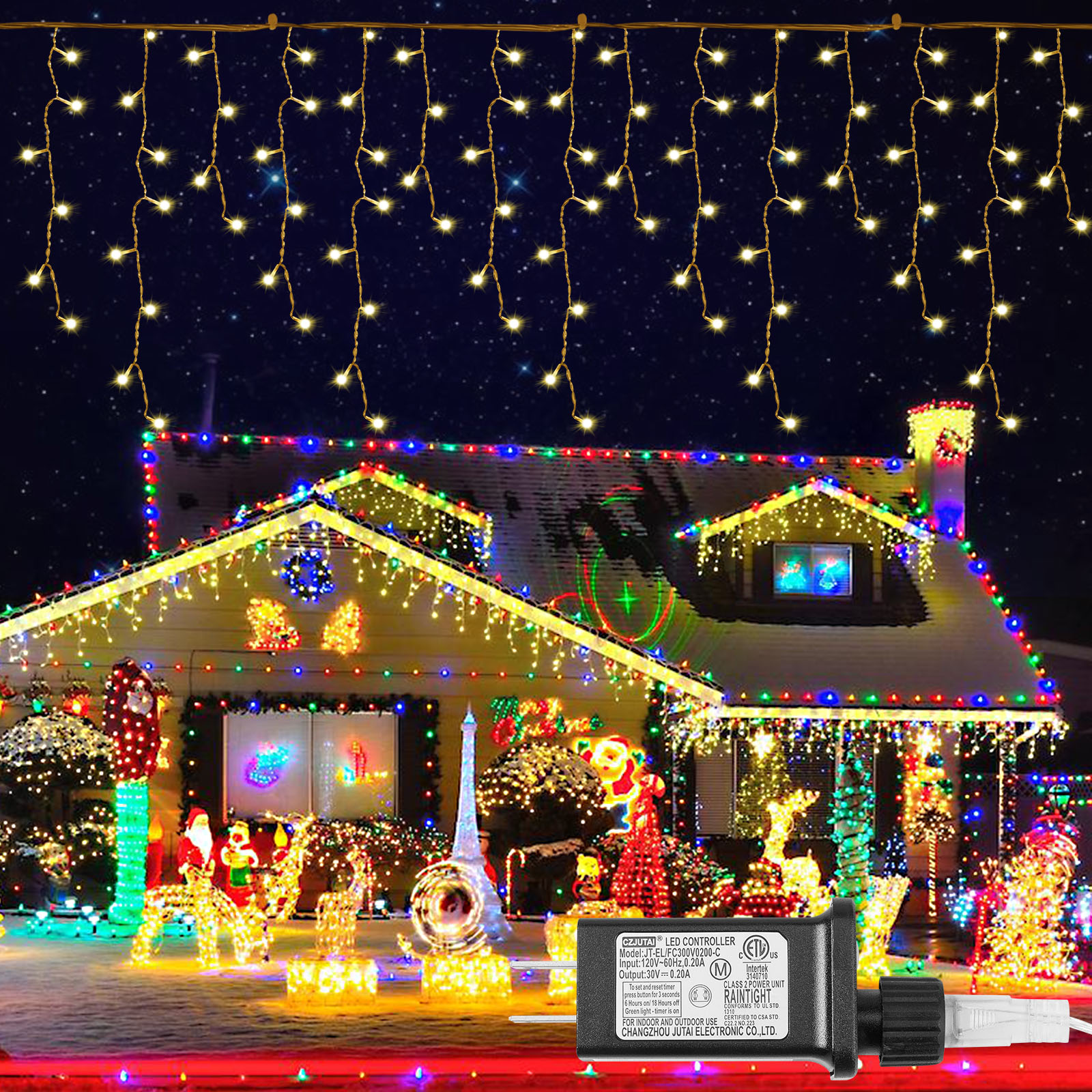 Guirnalda de luces LED para carámbano de 5M/10M/15M con cable de plomo de 5M/16,4 pies Función de memoria de bajo voltaje Temporizador de 8 modos Luces navideñas para carámbano impermeables Luces de carámbano para interiores y exteriores para decoraciones navideñas y bodas