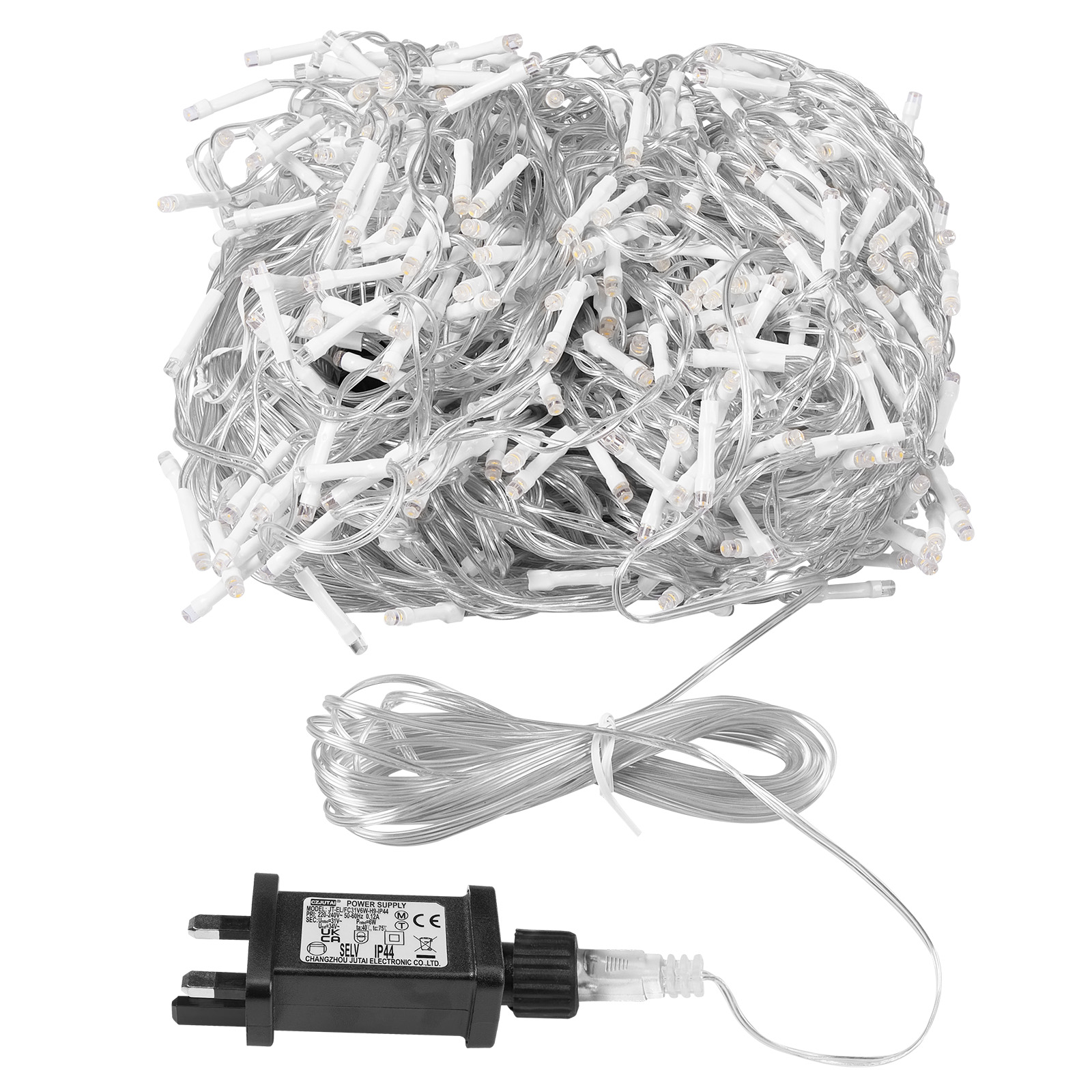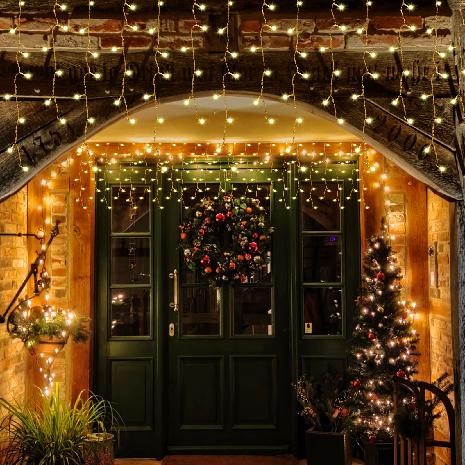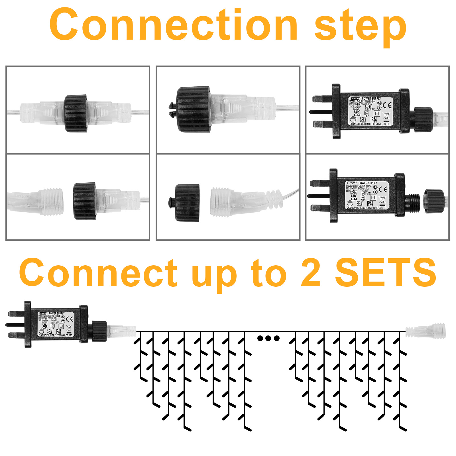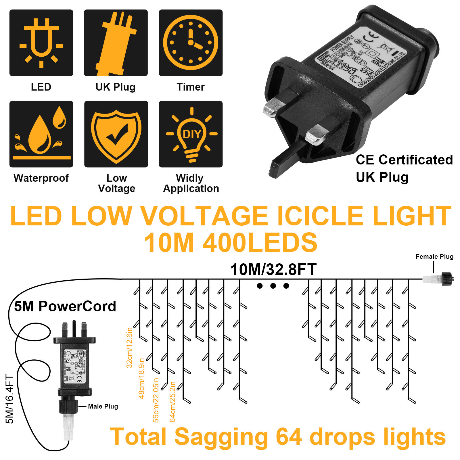 * Cadena súper larga y cable de alimentación: esta cadena de luces LED para carámbanos con 5 M (16,4 pies)/10 M (32,8 pies) de longitud de cadena larga de 15 M (49,2 pies) y cable de alimentación de 5 M/16,4 pies de largo, fácil de usar, Adecuado para casi todas las ventanas o casas de altura normal.Modelo de 5 M/16,4 pies con 32 caídas y 200 LED, modelo de 10 M/32,8 pies con 64 gotas y 400 LED, modelo de 15 M/49,2 pies con 96 gotas y 600 LED.