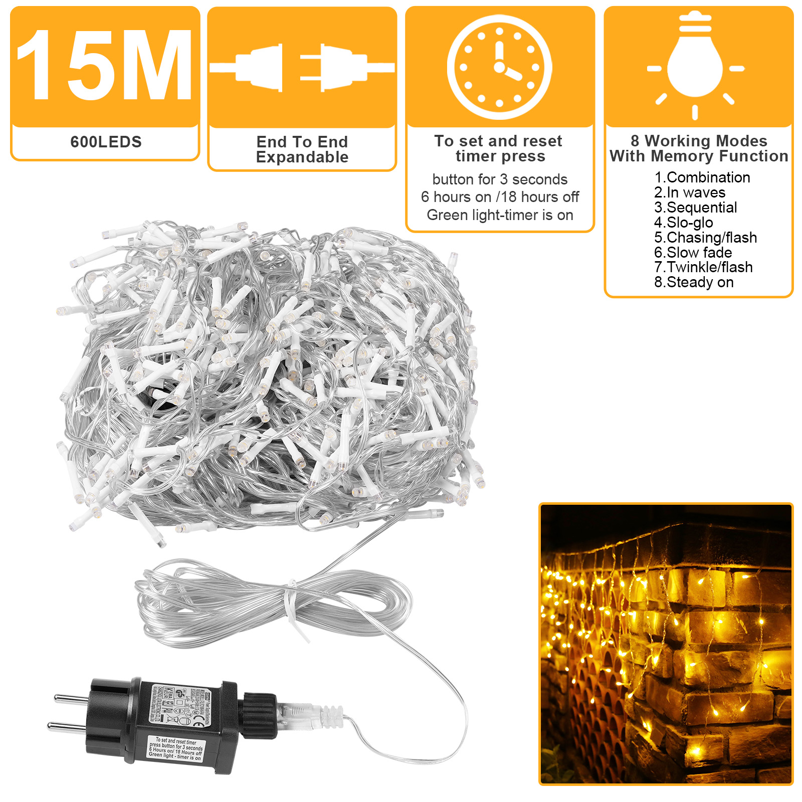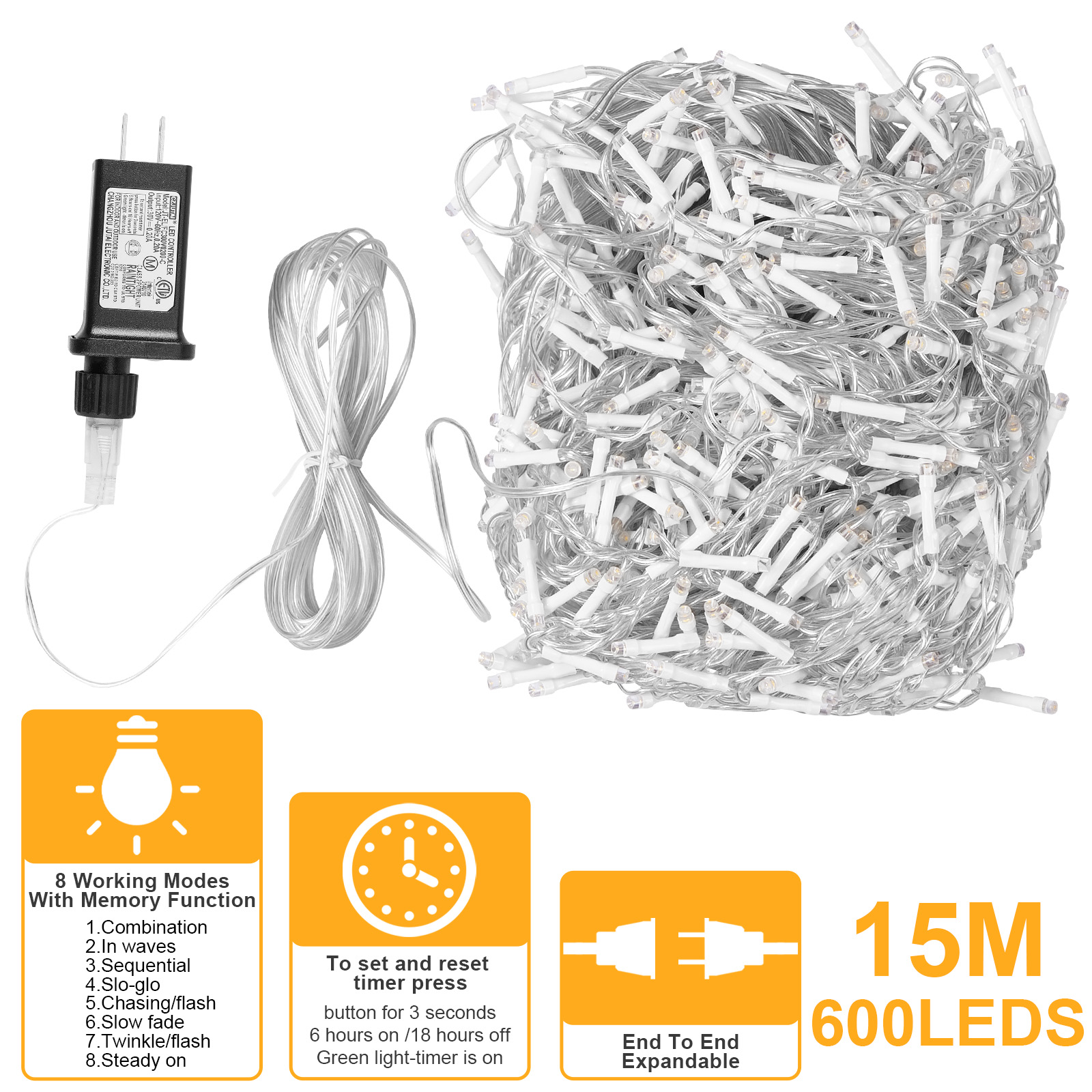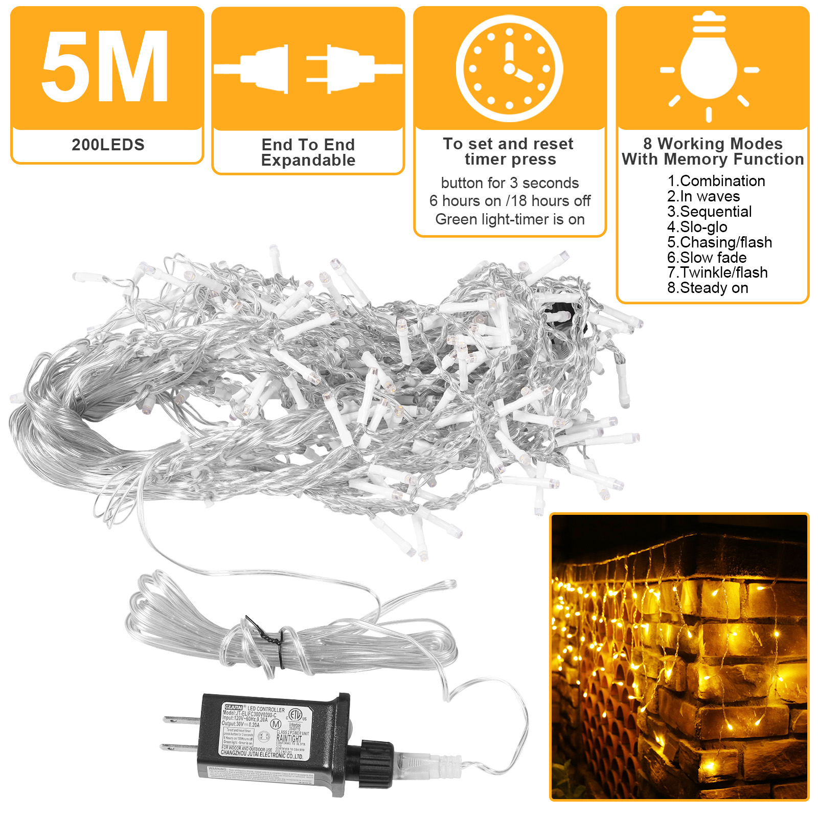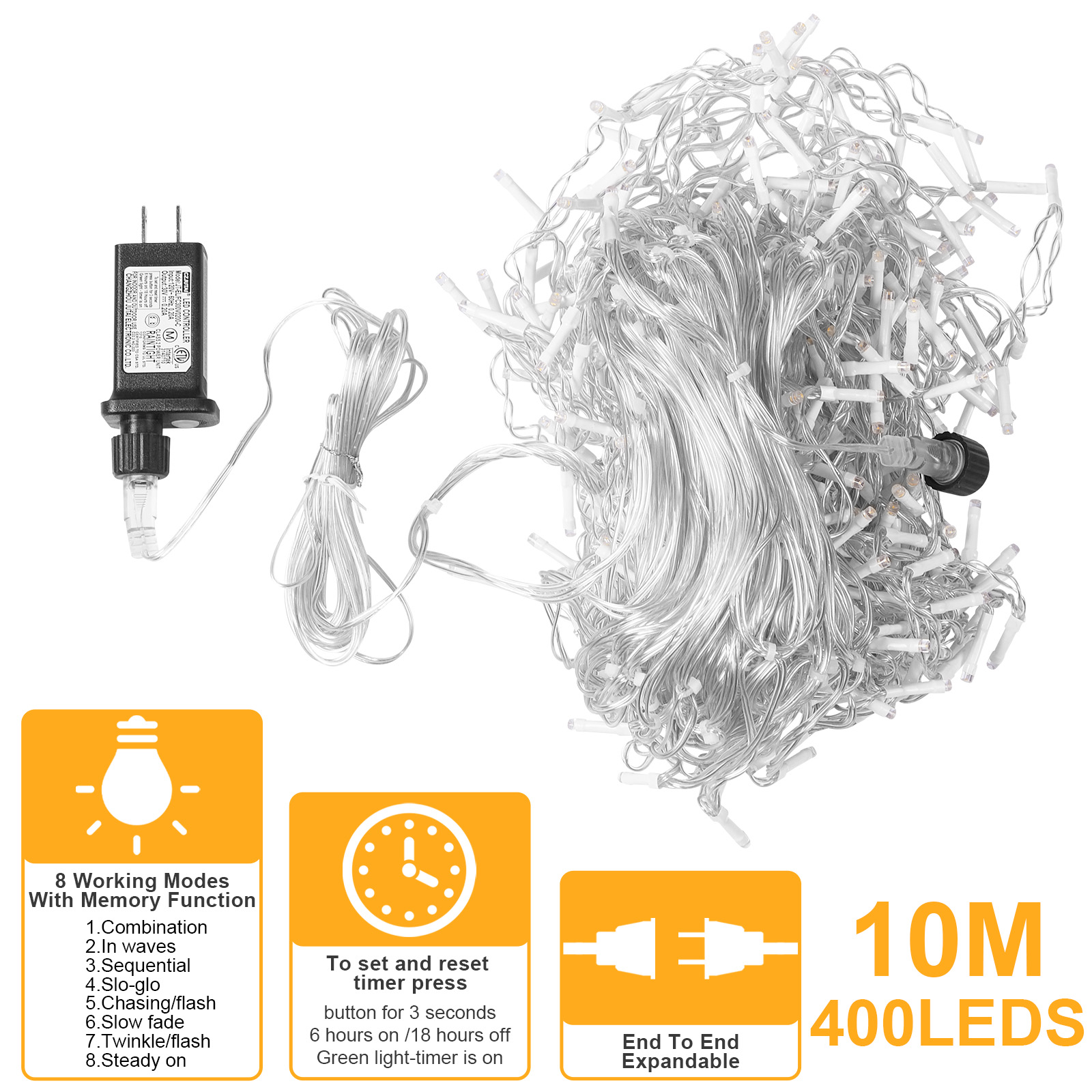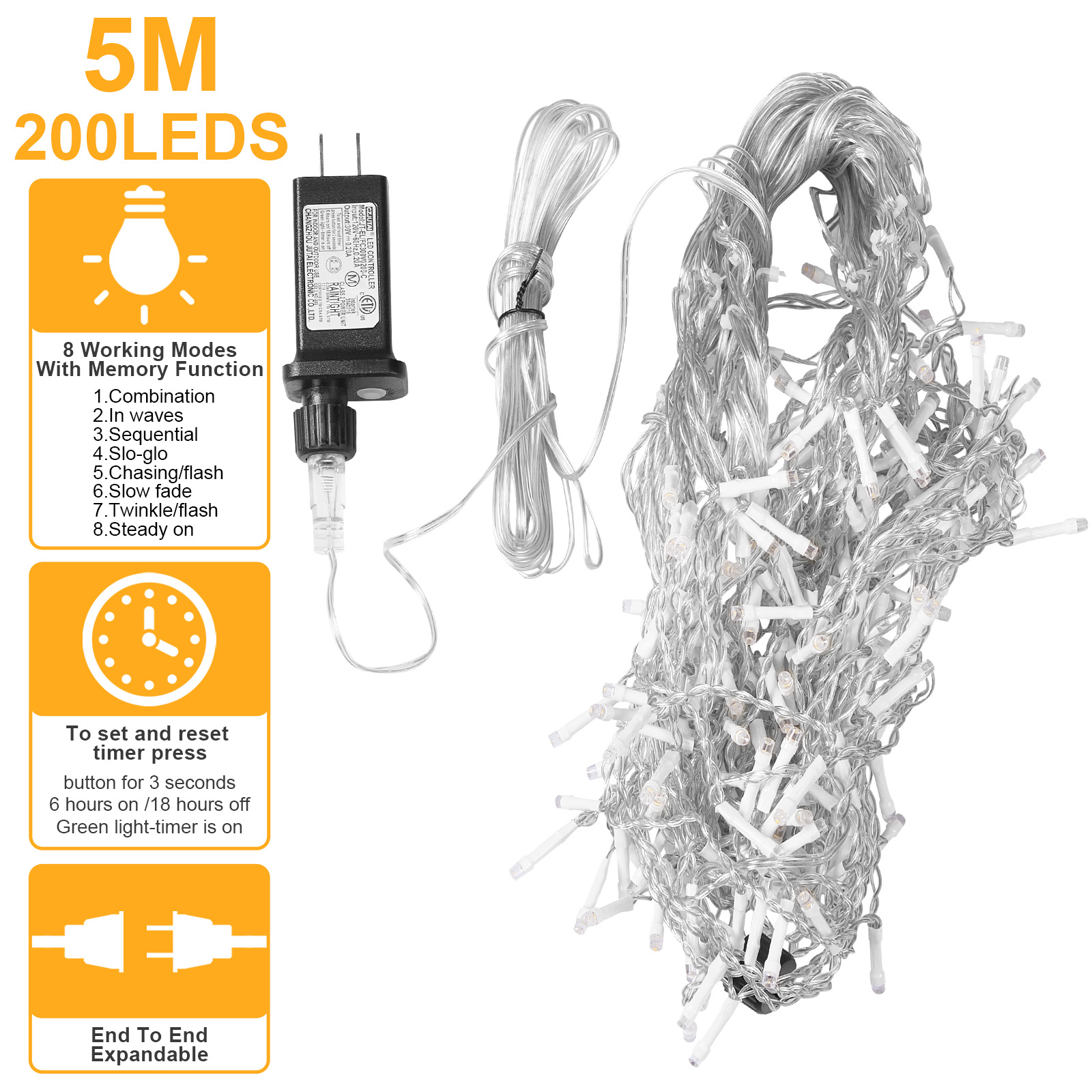 Guirnalda de luces LED con memoria de 5/10/15M, luces navideñas impermeables para exteriores, 8 modos, temporizador, decoración navideña de Año Nuevo, enchufe de 31V