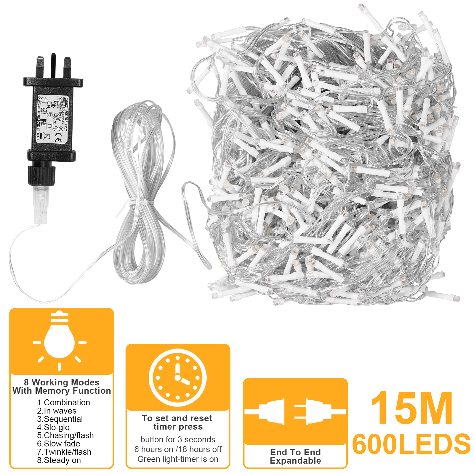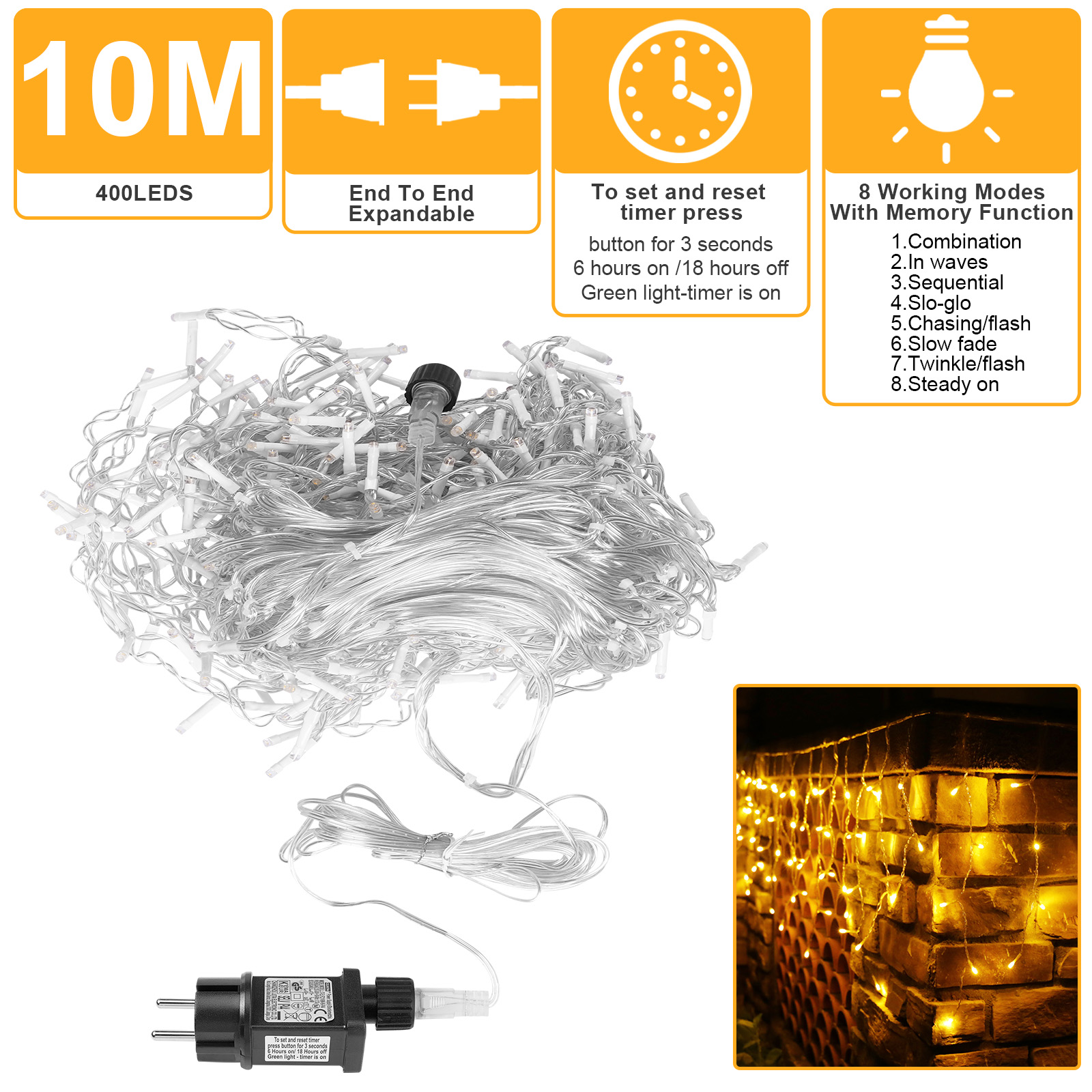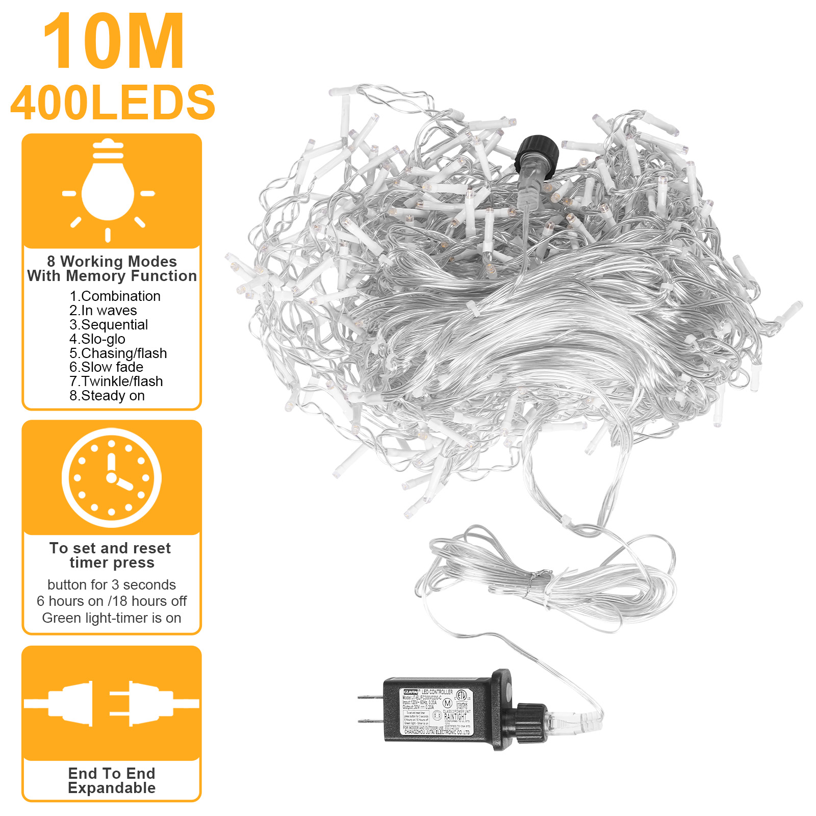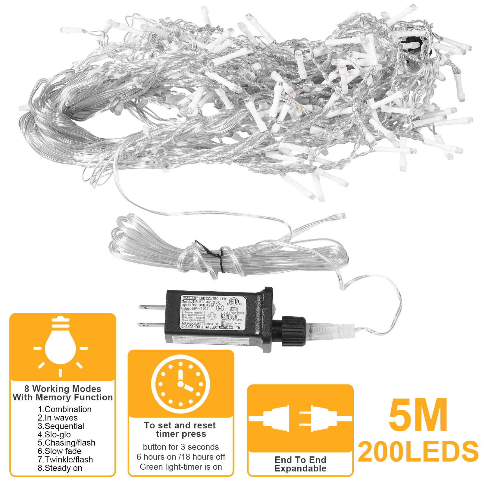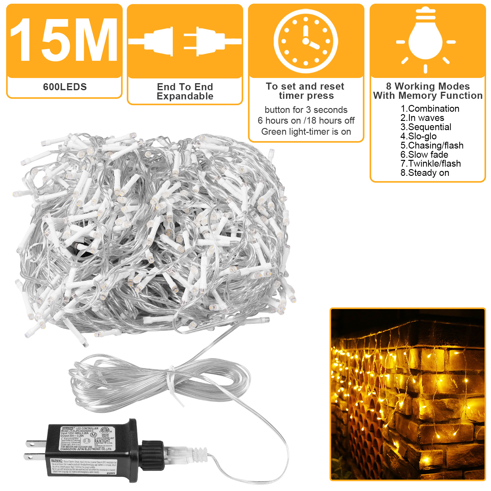 Guirnalda de luces LED con memoria de 5/10/15M, luces navideñas impermeables para exteriores, 8 modos, temporizador, decoración navideña de Año Nuevo, enchufe de 31V