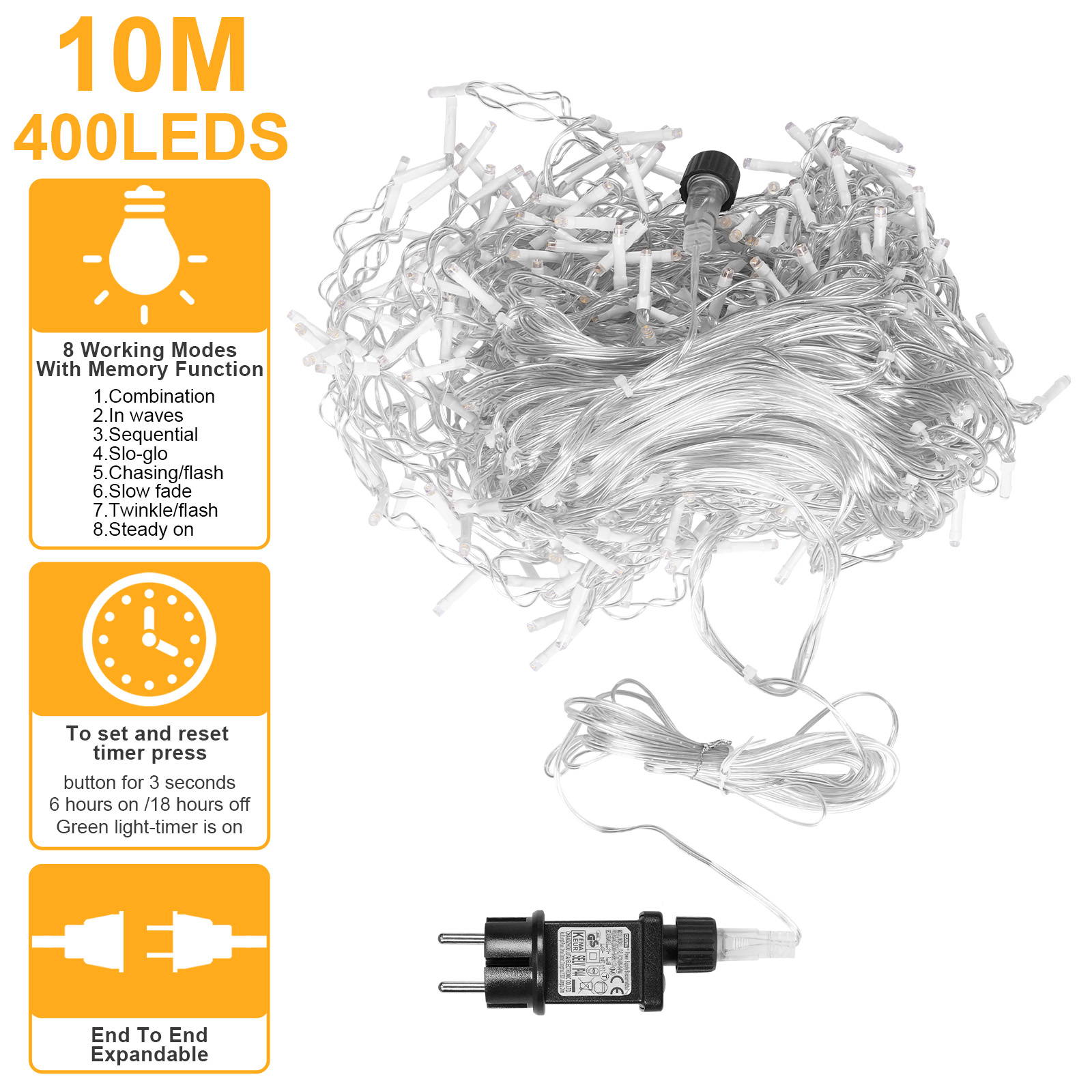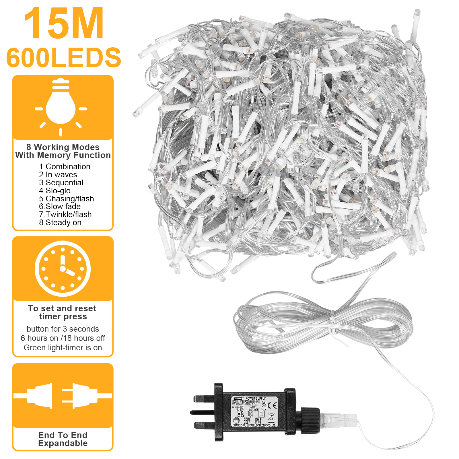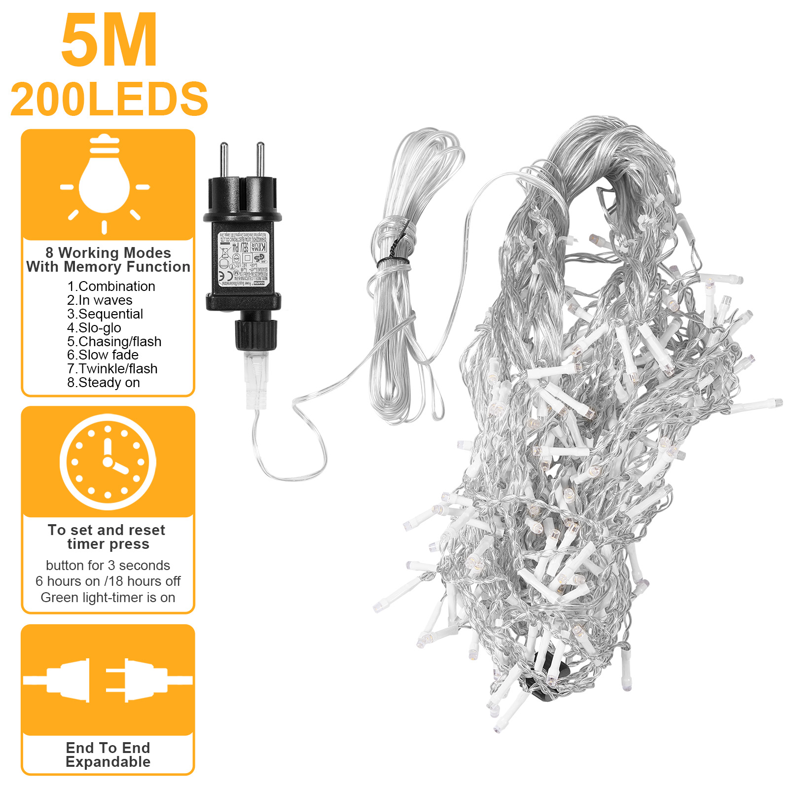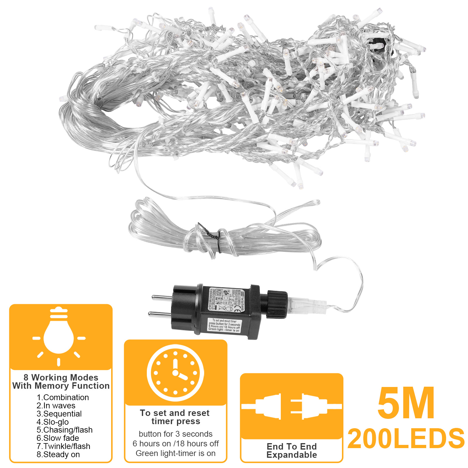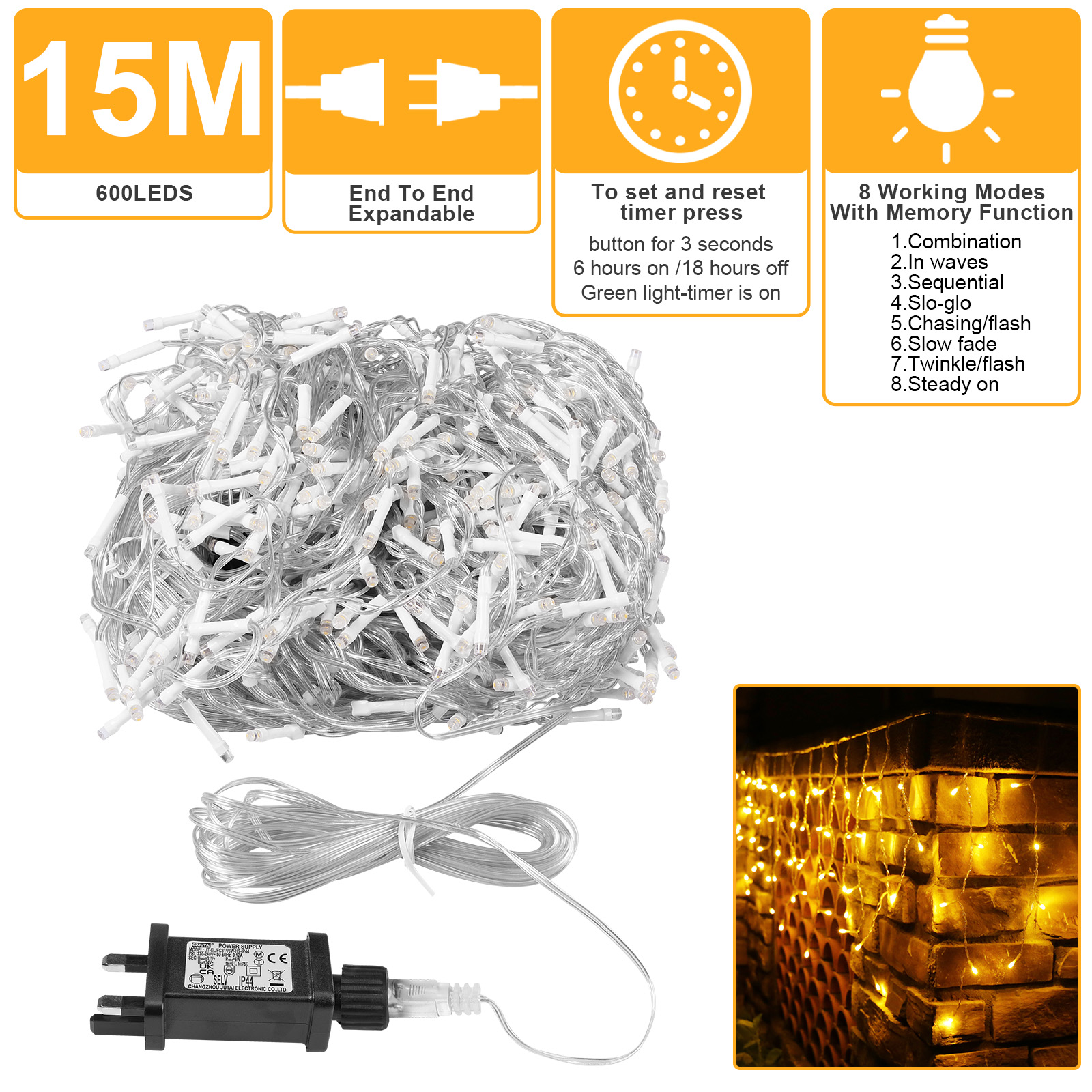 Guirnalda de luces LED con memoria de 5/10/15M, luces navideñas impermeables para exteriores, 8 modos, temporizador, decoración navideña de Año Nuevo, enchufe de 31V