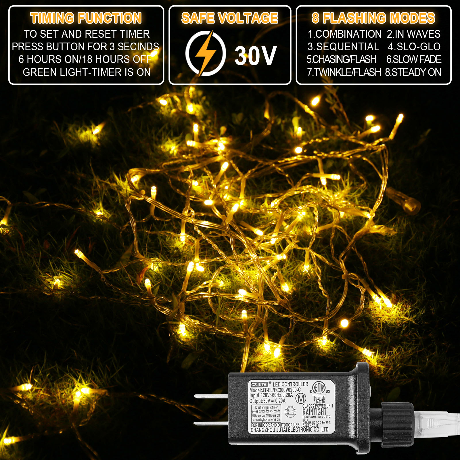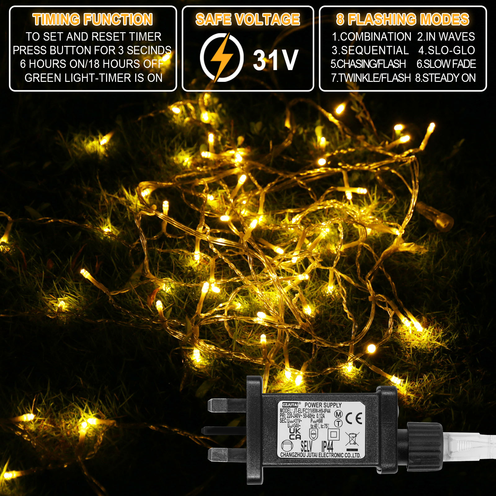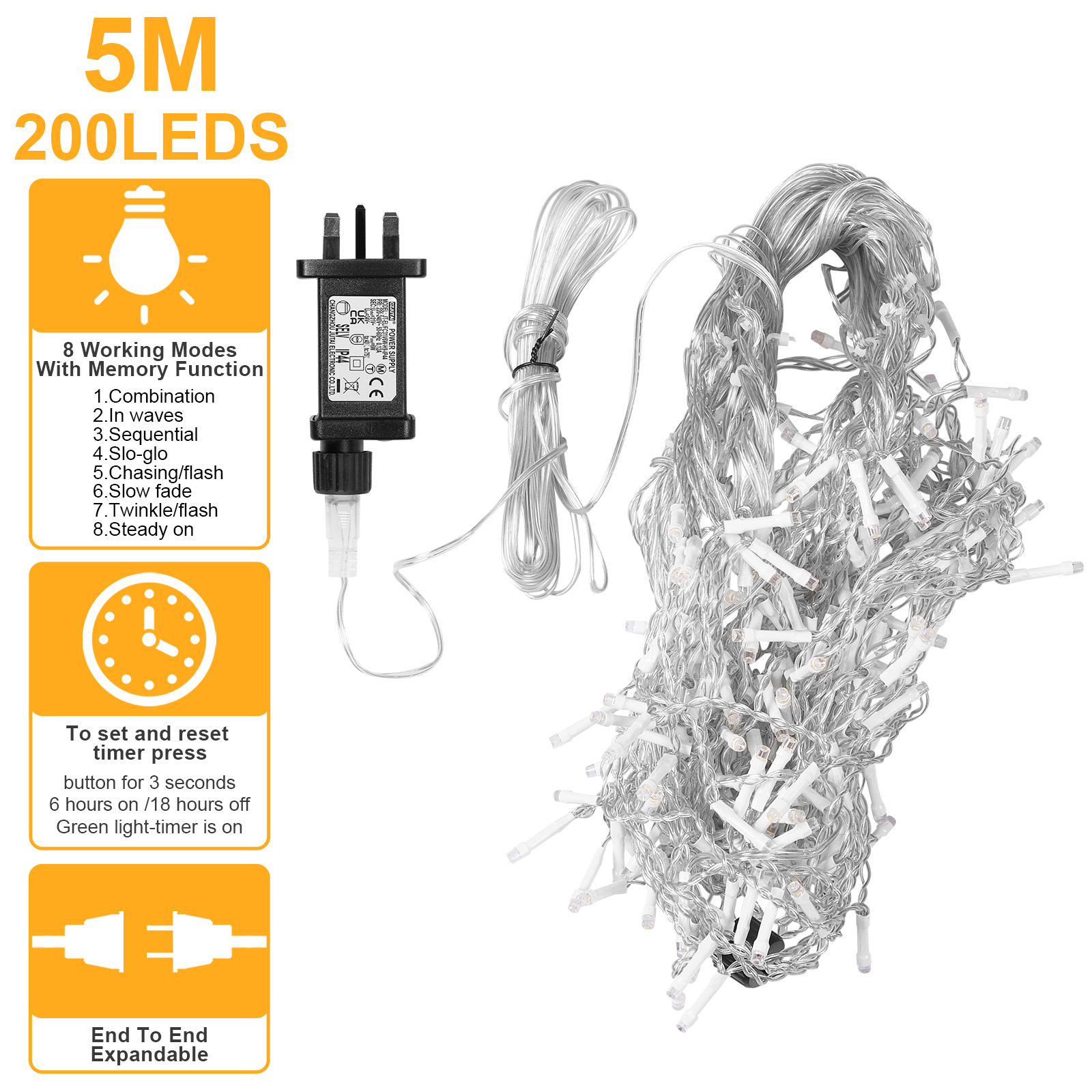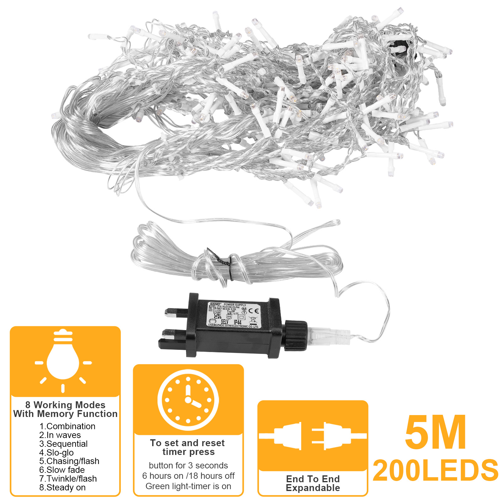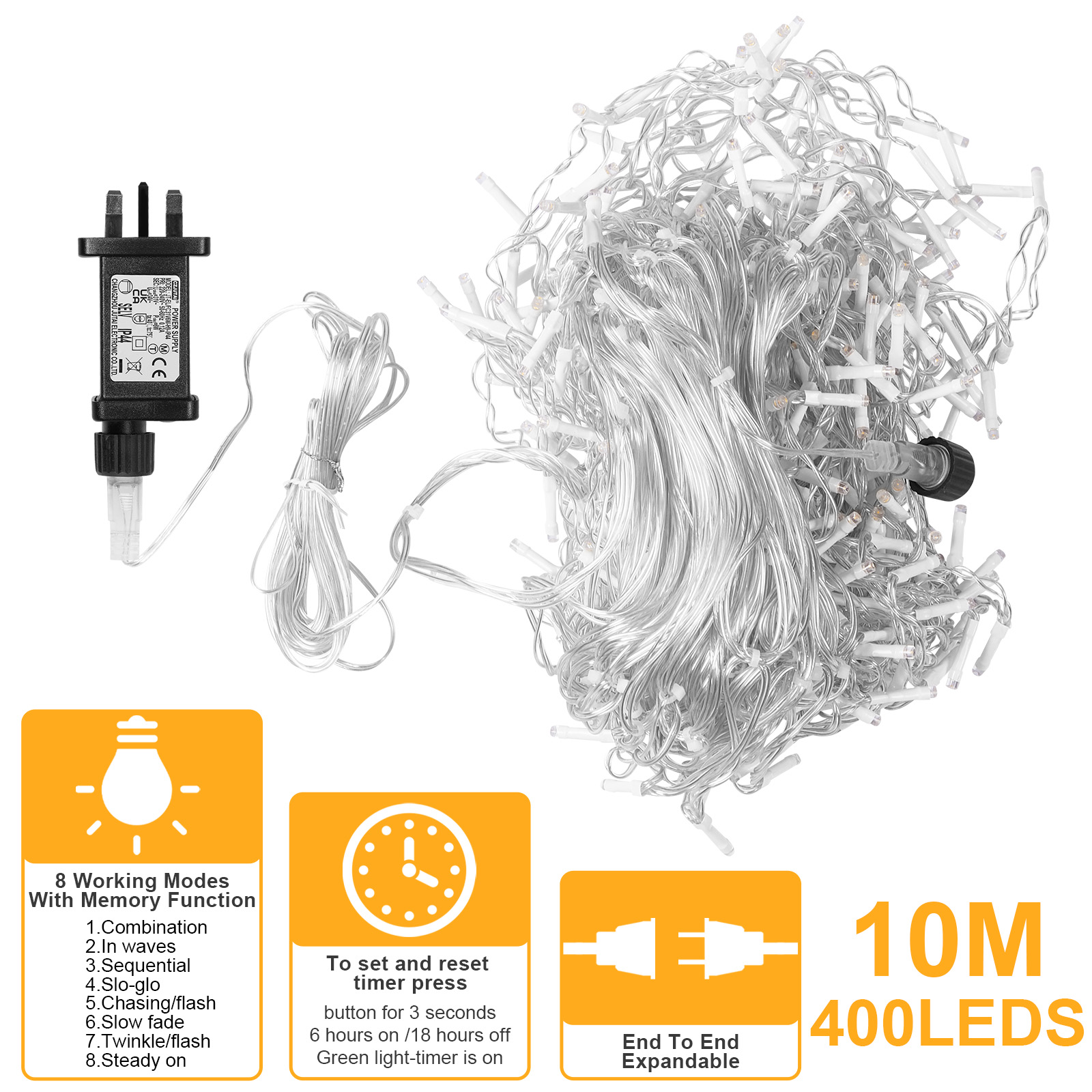 Guirnalda de luces LED con memoria de 5/10/15M, luces navideñas impermeables para exteriores, 8 modos, temporizador, decoración navideña de Año Nuevo, enchufe de 31V