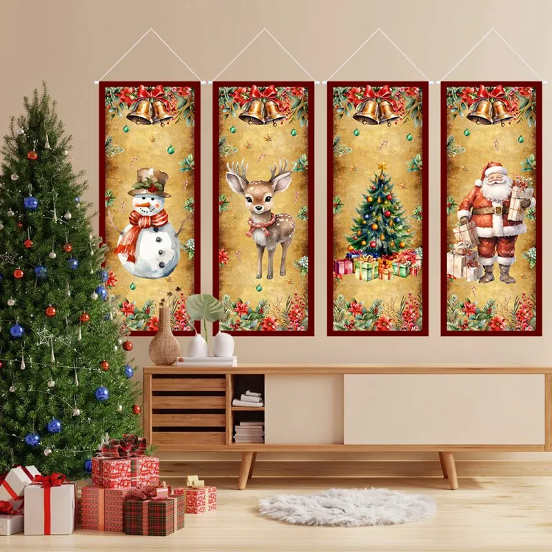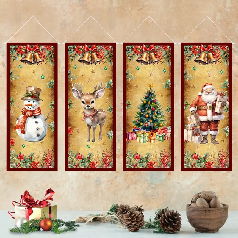 Bandera colgante de Navidad, adorno Vintage para casa de Navidad, banderas colgantes, decoración 2025 para decoraciones de chimenea de fiesta en casa 2026