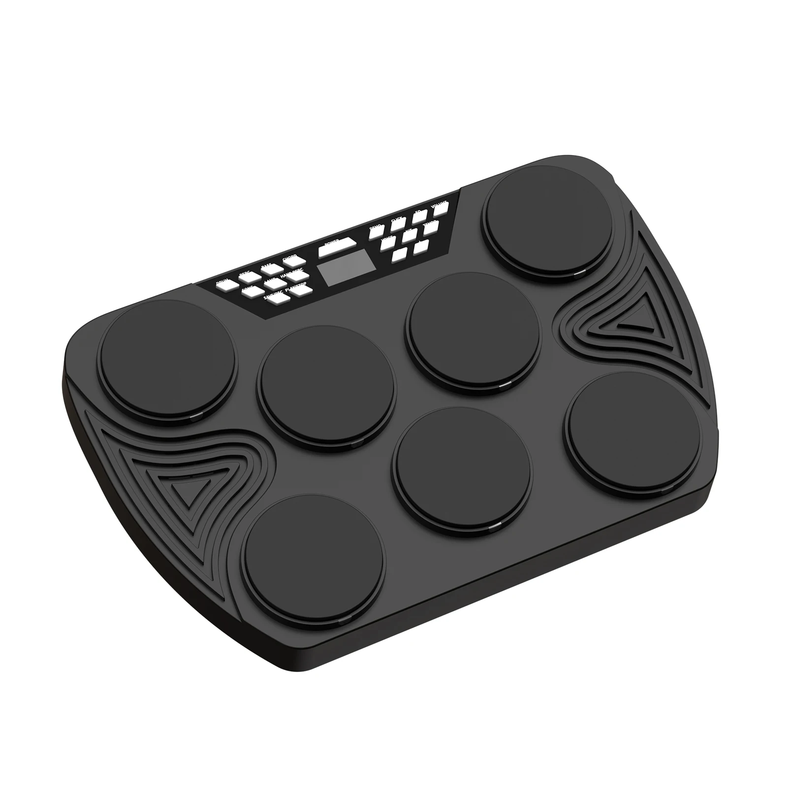 Juego de batería electrónica portátil, 7 almohadillas sensibles a la velocidad, batería de mesa integrada, 2 altavoces, almohadilla de batería de práctica recargable estéreo